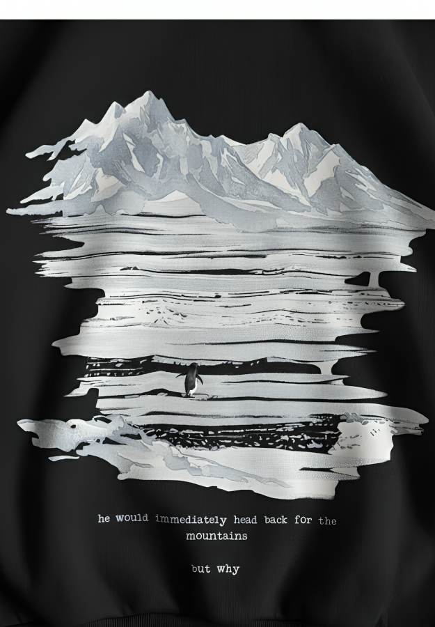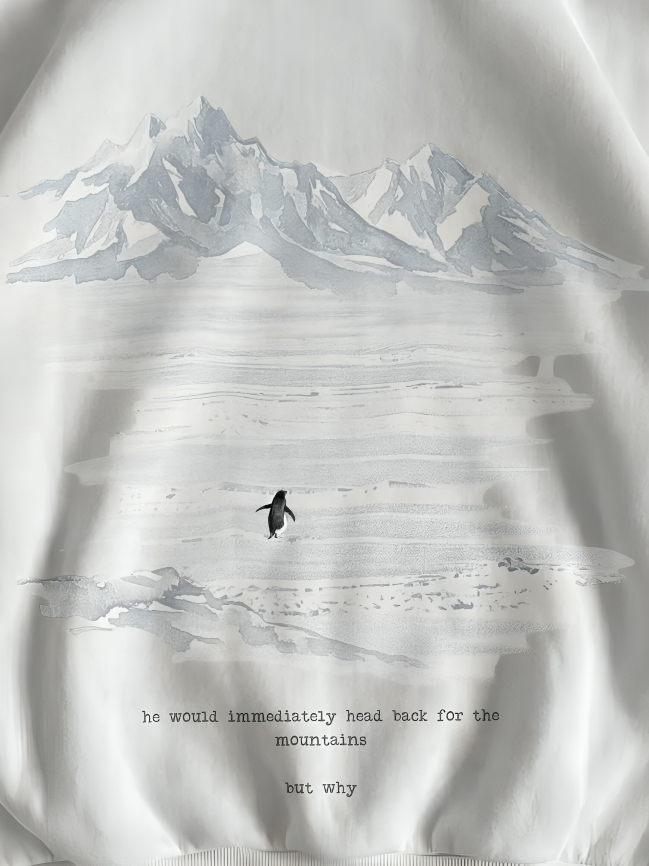 The design features a lone penguin heading toward the mountains — a symbol of independence, strength, and choosing growth over comfort.